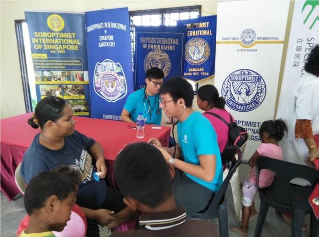 This was a 5 club project spearheaded by SI Club of Bangsar. The collaboration went well with support from SI Clubs of Singapore, Garden City, SI Orchid as well as SI Johor Bahru. Regency Hospital collaborated by providing nurses to handle the health screening, hand hygiene whilst SIJB had Dr. Maria Fernadez as consultant and Dr. Kirthi advising on dental hygiene. The Newcastle University final year medical students highlighted steps to be taken in the event of stroke, choking, diabetic reactions and other sudden emergencies. A guide on good nutrition and hygiene was also helpful as the children were curious to learn more. The children also explained that they did not wear any footwear as it was too hot, and they would always bathe in the river as the salty water would heal their wounds. A medical check up was set up for the orang asli at the Dewan (Hall ) of the Village and a site for the children to play and learn was set up at the terrace area of one of the residents. |